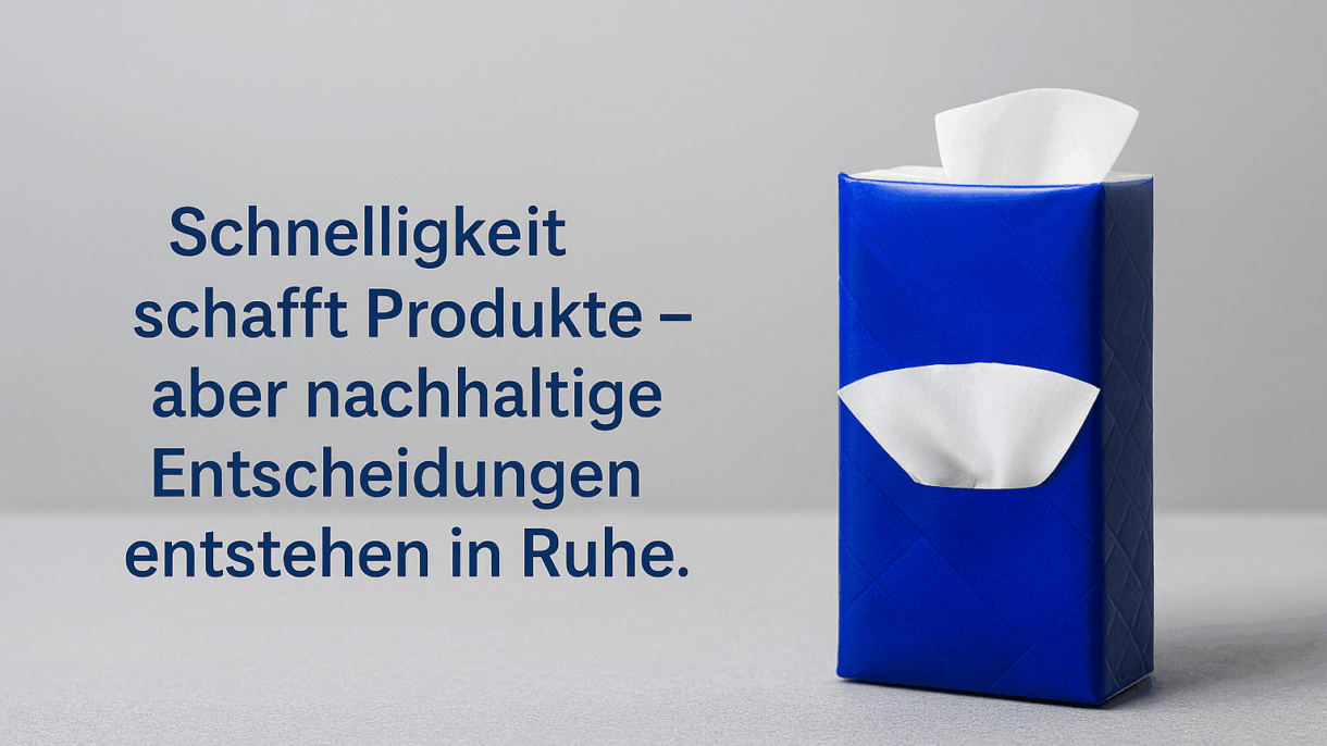 Schnelligkeit schafft Produkte – aber nachhaltige Entscheidungen entstehen in Ruhe.
