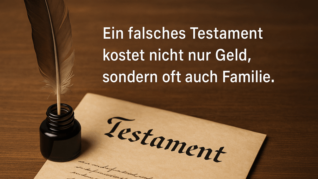 - Testamentsgestaltung ist strategisch bedeutsam – Form und Inhalte sind Entschiedungspunkte, keine Skizze.
